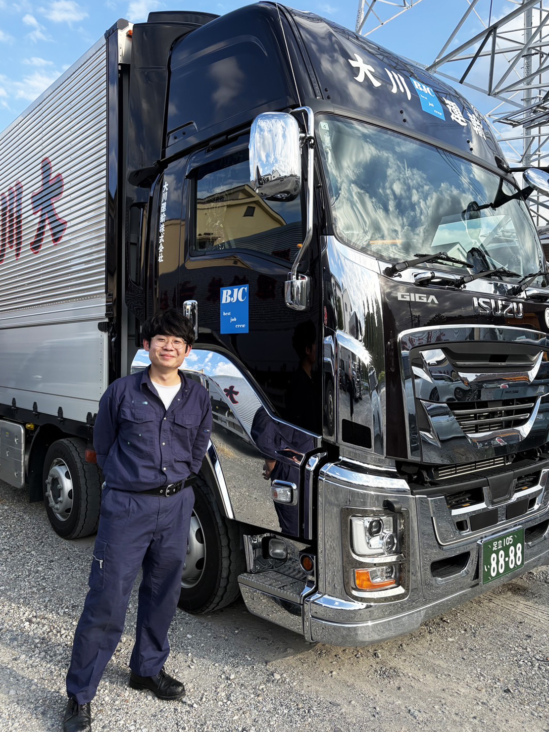ホームページで見たトラックがカッコよくて、自分も乗りたくて入社しました。